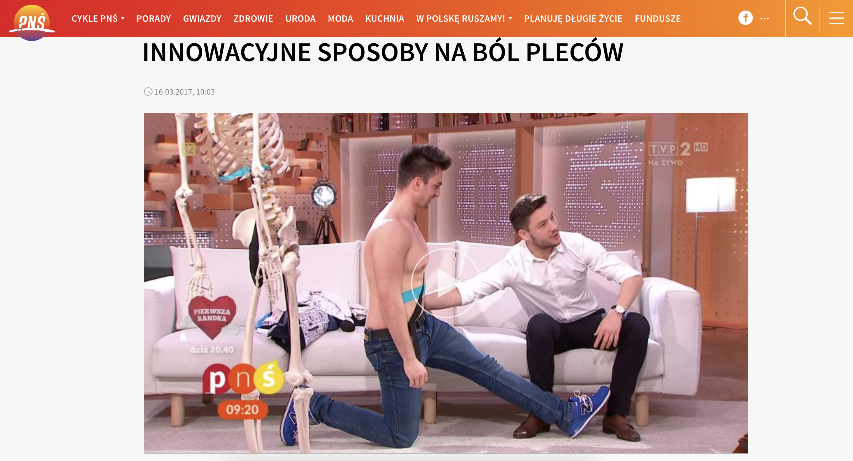 Pytanie na śniadanie TVP2 – „Innowacyjne sposoby na ból pleców” Warszawa, 16.03.2017 r.