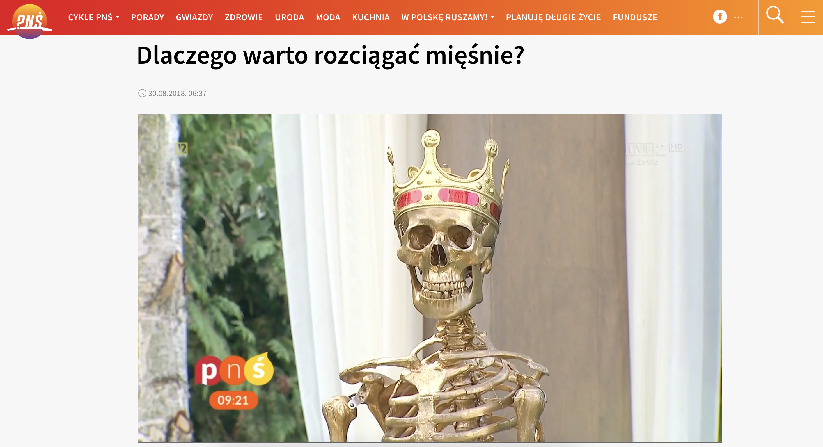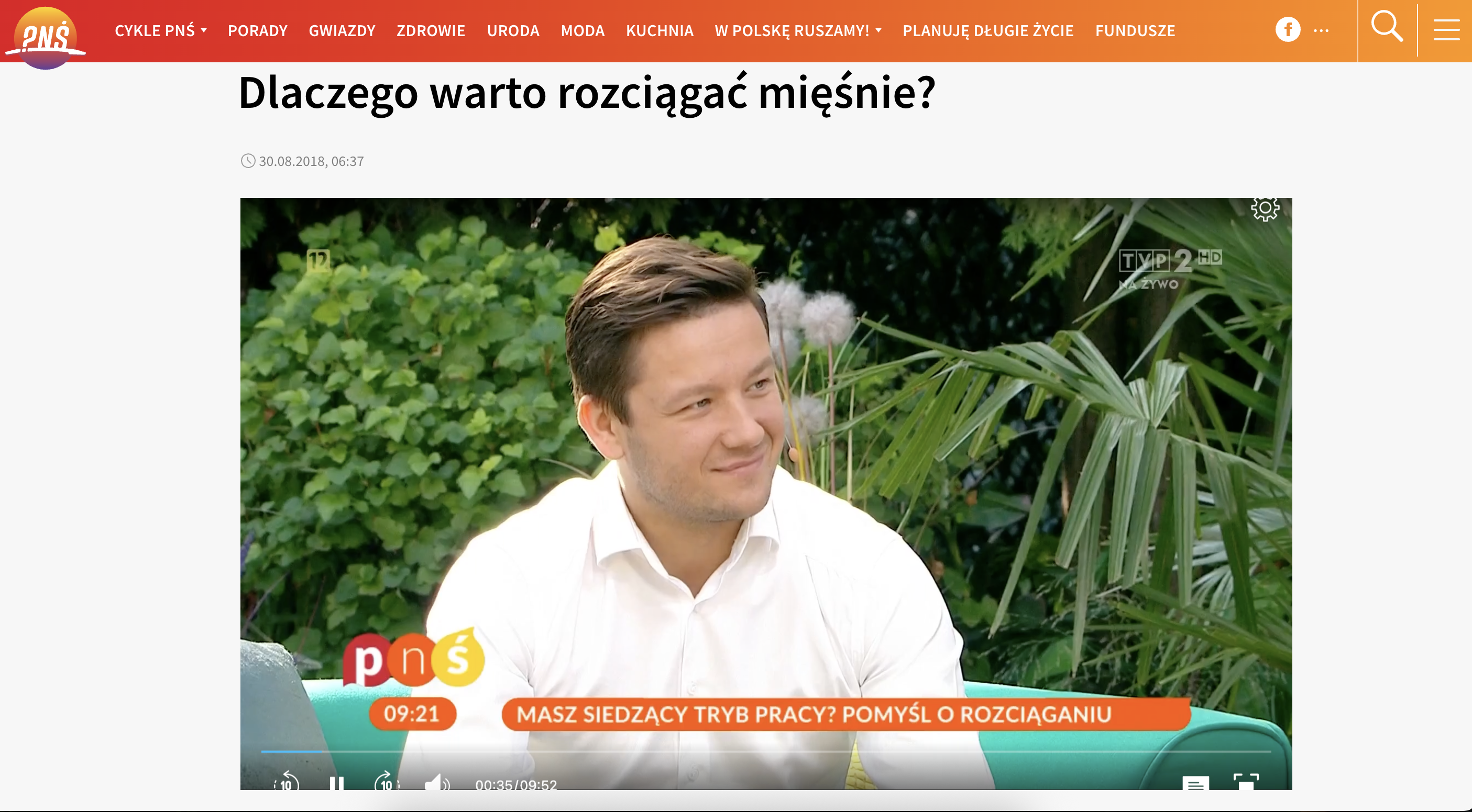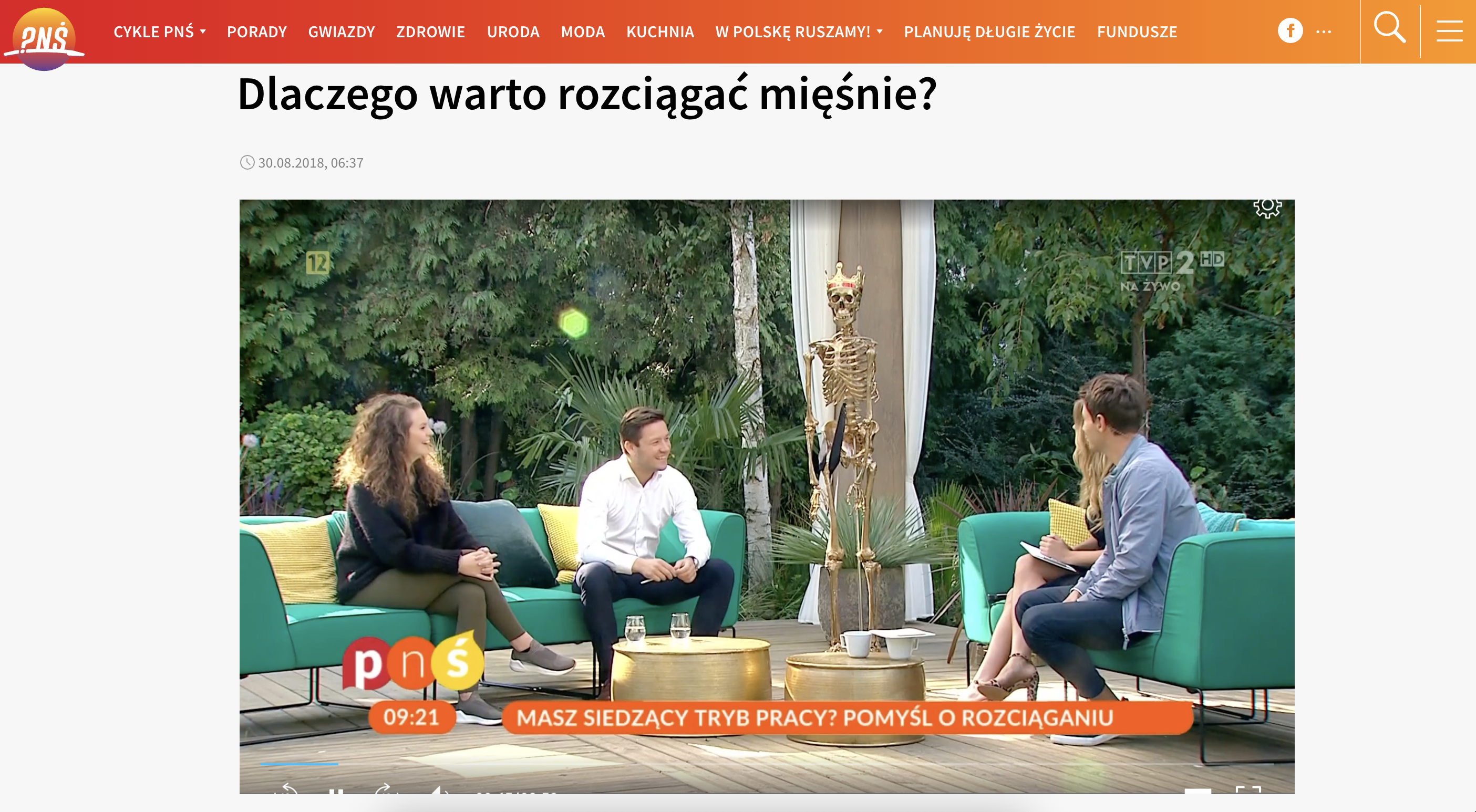 Pytanie na śniadanie TVP2 – „Dlaczego warto rozciągać mięśnie?” Warszawa, 30.08.2018 r